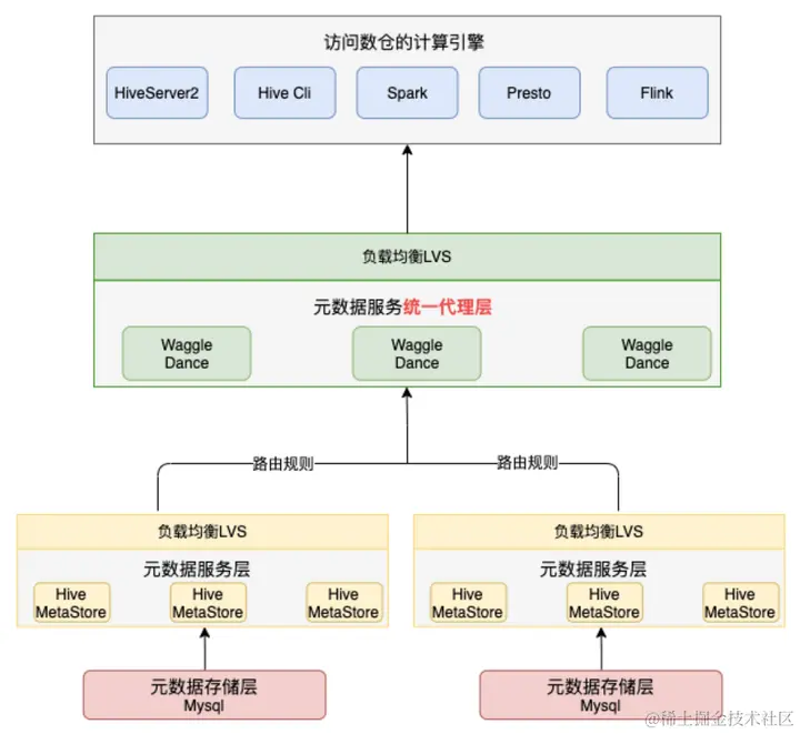 - Waggle-dance 作为一个网关服务,除了路由功能外,还支持后续的定制化开发和差异化部署,平台可根据需要添加诸如鉴权、防火墙过滤等功能。
