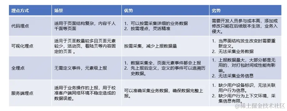 1.2 业内主流埋点方式的对比