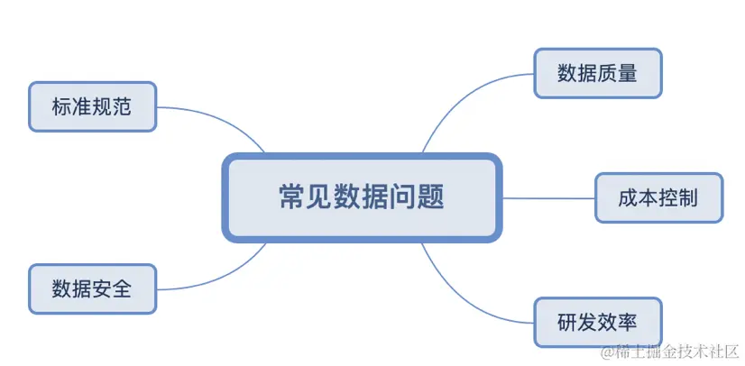 **质量问题:**最重要,大部分公司的数据部门启动数据治理的起因就是数据质量存在问题。例如数仓的及时性、准确性、规范性,以及数据应用指标的逻辑一致性等。
