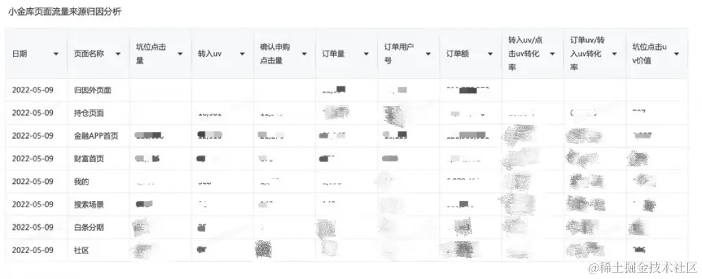 数据打通的收益是巨大的,下面是一个实际使用案例-小金库页面流量来源归因分析: