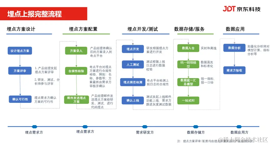作者团队制定了完整的埋点上报规范规程,并邮件通知各部门产研按流程,照规范上报数据。上报流程为埋点方案设计、埋点方案配置、埋点开发/测试、数据存储/服务、数据应用五个环节,每个环节都要通过必要的步骤才可继续向下执行。
