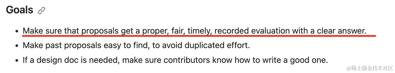 我们在官方提案文档上也会有提到提案的讨论一定是能得到适当、公平、及时、有记录的评估,能得到明确的答复。且要求在 “proposal review meetings” 上审查和记录。