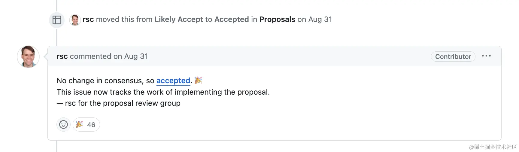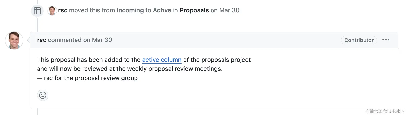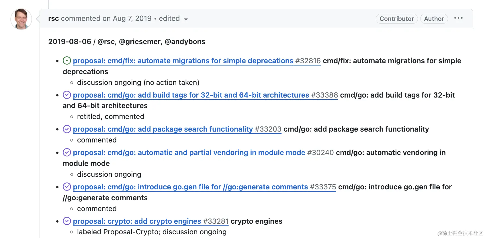 每周会议结束后,会议记录会发布到 golang.org/s/proposal-…,任何对哪些提案正在审议的小伙伴都可以关注这个 issues。