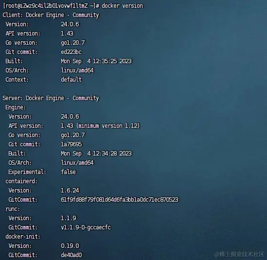 执行docker version后出现此结果表示安装成功