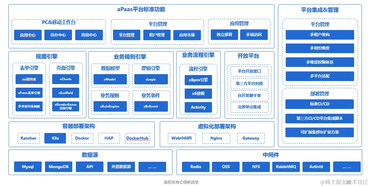 模型驱动对软件所涉及到的功能进行建模,以应用开发平台为核心,承载各种开发工具和复杂逻辑,并将其可视化,辅以少量代码。 适合作为开发者技术中台核心 ,快速按照企业需求产出一整套系统。