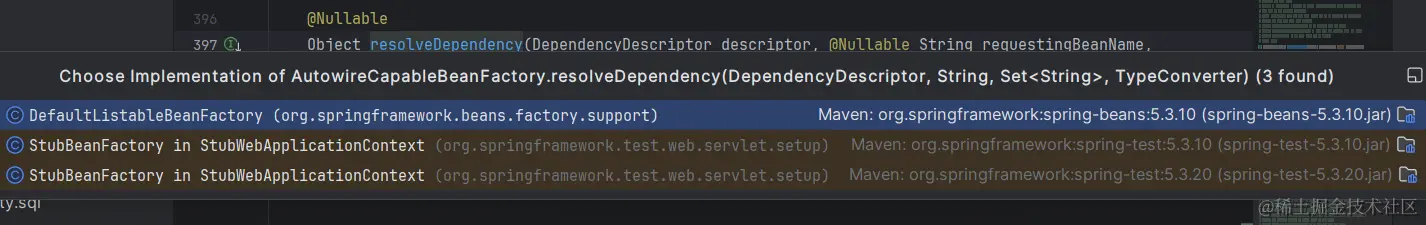 resolveDependency方法是接口BeanFactory接口提供的,DefaultListableBeanFactory是BeanFactory的一个实现类。