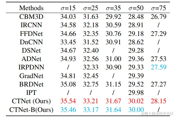 在本文中,作者们提出了一种交叉Transformer去噪卷积神经网络(CTNet)来实现图像去噪。