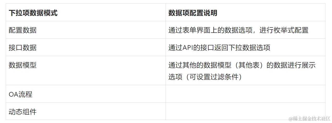 下拉框的选项数据有多种来源方式,根据不同的场景自己选择,目前下拉框数据选项来源有是那种方式