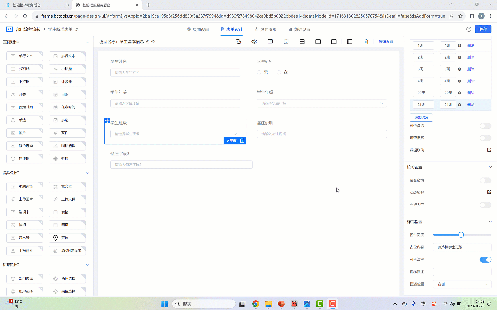 数据模型本质上也是实体的表,那么这种模式表示通过 另外的一张表里的数据进行展示下拉框的选项,如下图所示: