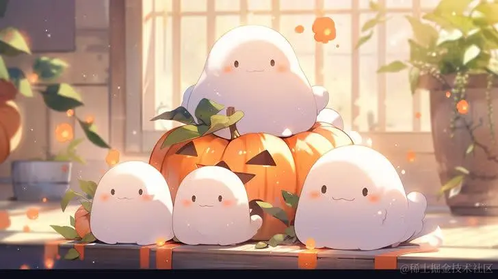 关键词: Cute illustration of little ghosts behind a big pumpkin --ar 1:1--niji 5 --s 180 一个大南瓜后面的小幽灵的可爱插图