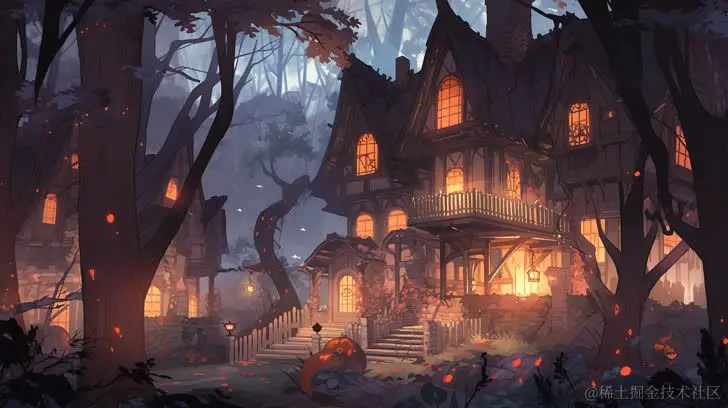 关键词: Halloween haunted house, in the woods, illustrative--ar 1:1--niji 5 --s 180 万圣节鬼屋,在树林里,插图
