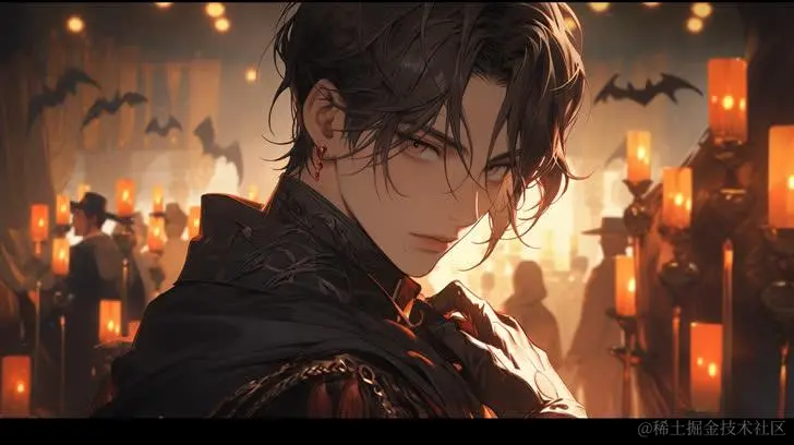 关键词: Halloween illustration , a handsome vampire, Pixiv, realistic lighting and shading, dark beige and navy, scoutcore,hiroshi yoshida --ar 1:1--niji 5 --s 180 万圣节插图,一个英俊的吸血鬼,Pixiv,逼真的灯光和阴影,深米色和海军蓝,