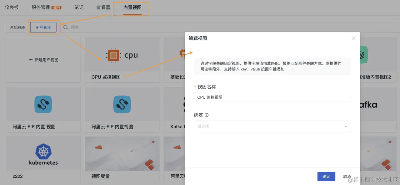 - 用户视图是用户自定义创建的视图模版,可用于在查看器绑定进行关联分析。