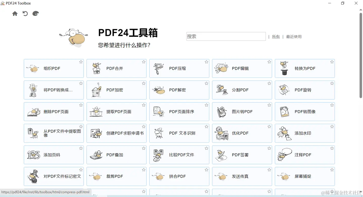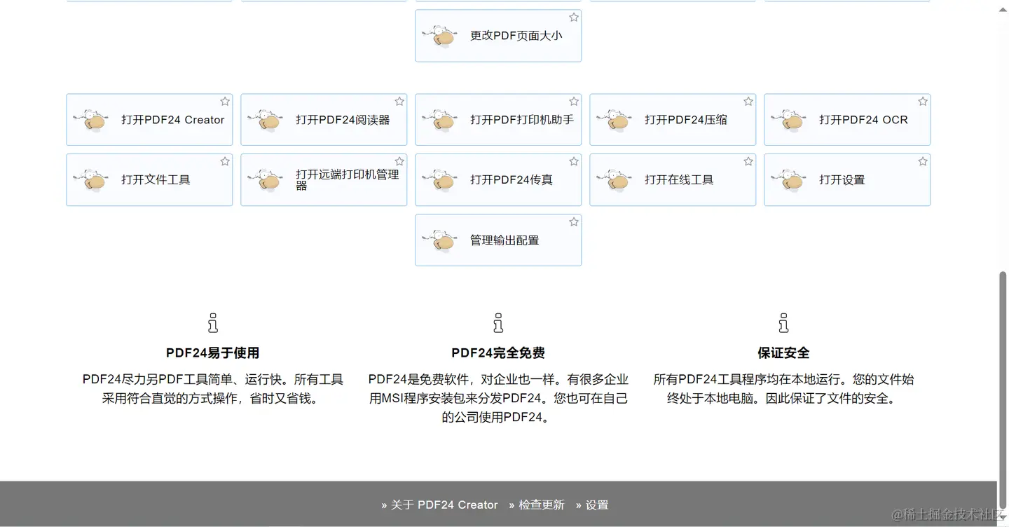 用户可以选择该软件作为打印机来生成一个PDF文件,或者将其用作通用的PDF转换工具,将任何可打印文件转换为PDF文件。此外,PDF24 Creator还提供了一个功能齐全、轻量级的PDF阅读器。