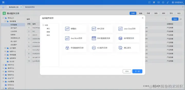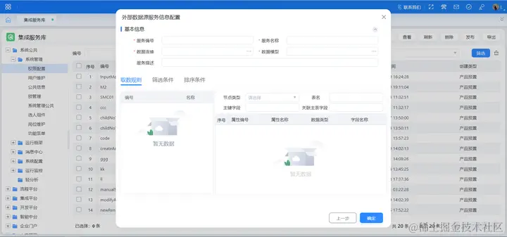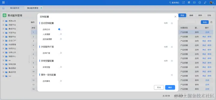 集成服务提供了一系列服务的统一注册管理机制,能够支持企业常见基础场景并支持零代码动态一键发布。服务的开发由传统的硬编码方式,转变为通过简单的界面进行低代码配置生成。