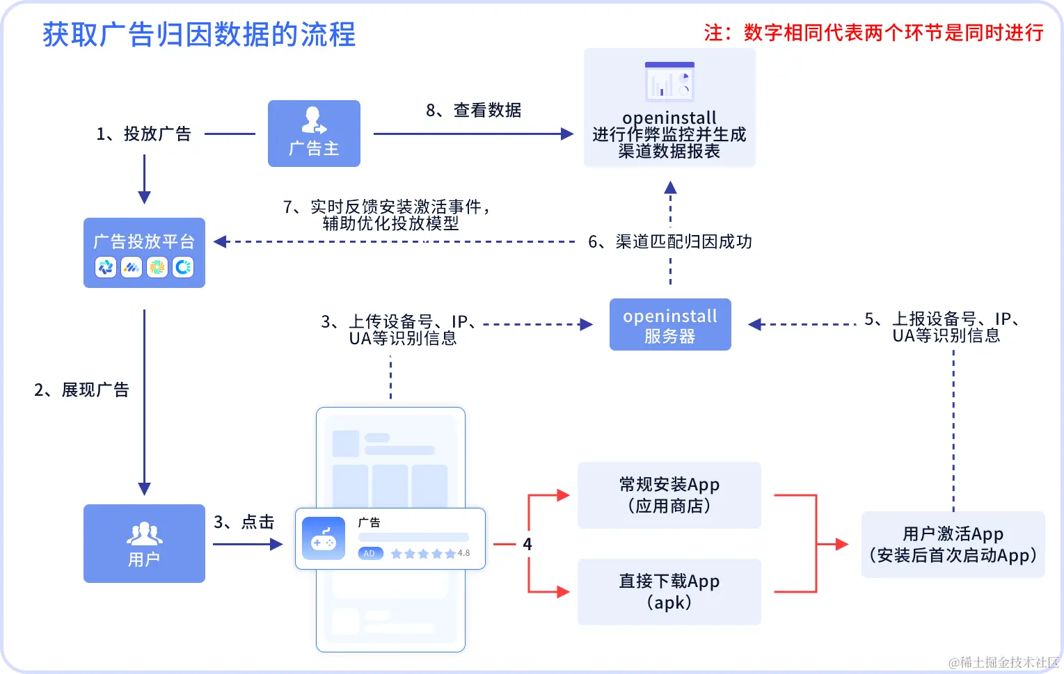 - 对广告主而言,广告归因的出现解决了多平台投放时的抢量冲突,能够有效分析不同平台的用户价值,以及广告的投放效果,从而指导后续的素材优化和投放策略,实现降本提效。