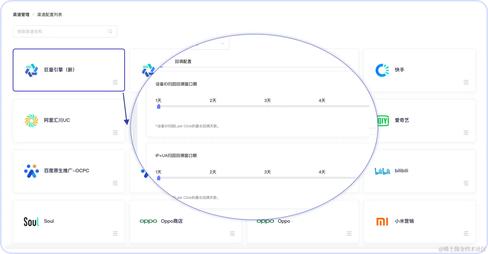 openinstall支持自定义归因配置,包括设备ID归因(精准归因)、IP+UA归因(模糊归因)在7天内的任意回溯期,结合Last Click归因原则进行应用。广告主可以根据自身实际情况进行灵活配置,比如游戏应用设置7天回溯,给足用户较长的归因缓冲时间;电商应用设置较短的回溯期,使转化事件的分析更有价值。