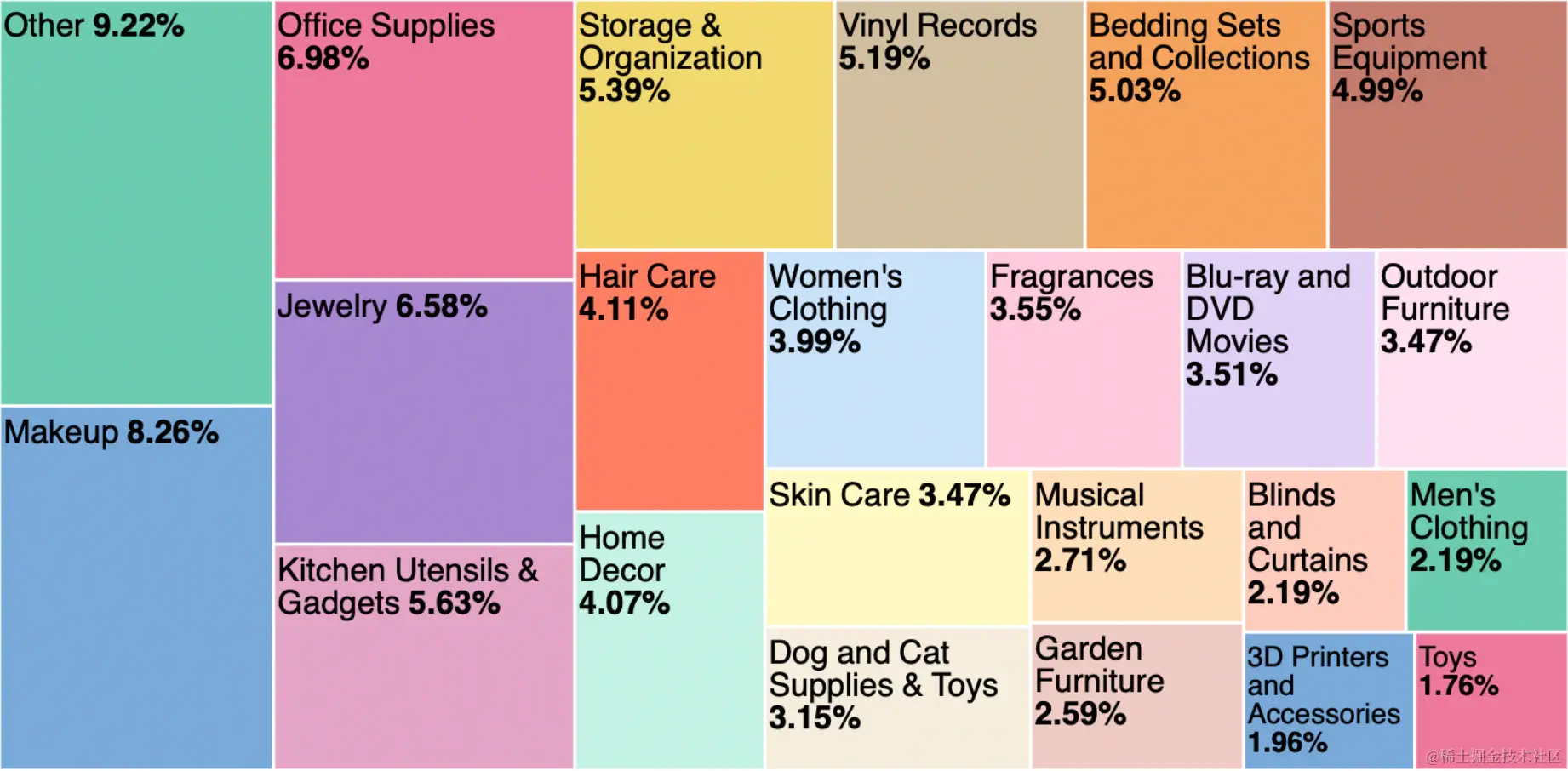 树形图可视化 - category.keyword(产品类别)的前 22 个值
