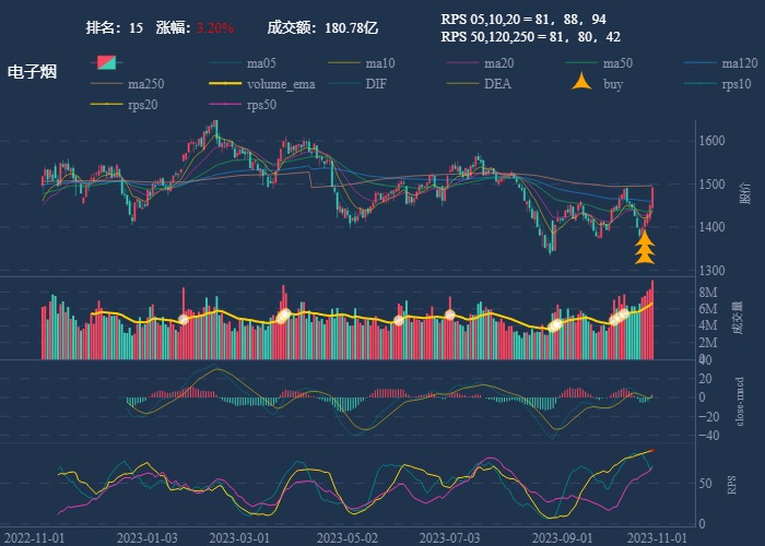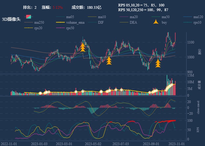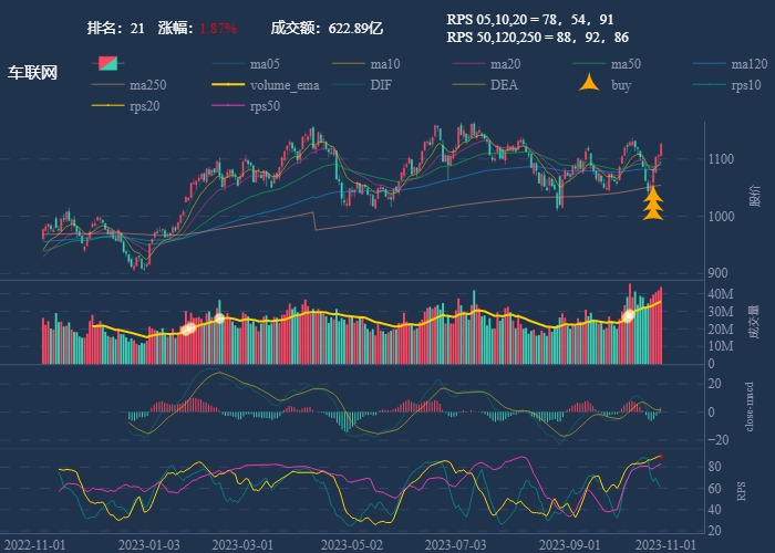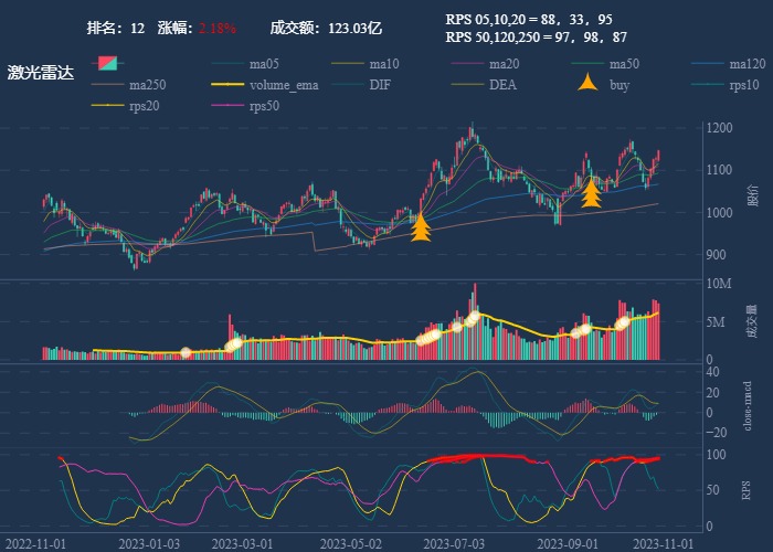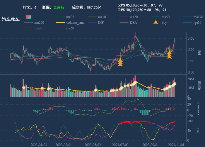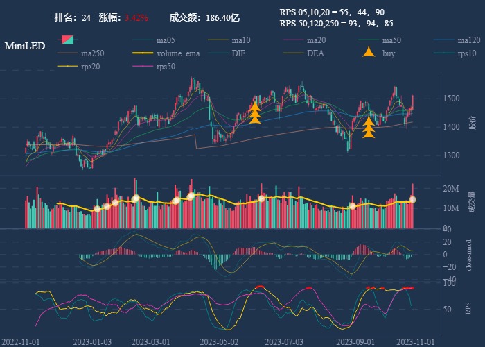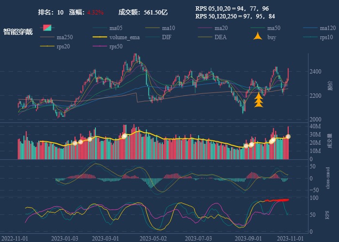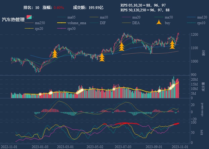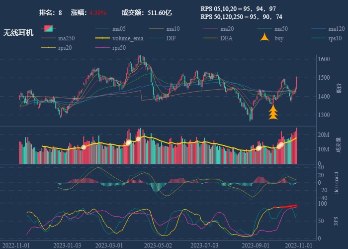 - 一线红:第一次买点出现后往往是顶峰,等回调,macd 反转,rps50 还一直红,第二次买点重现