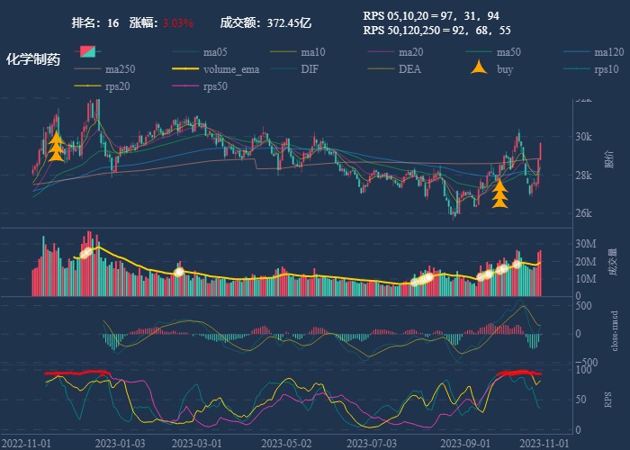- 第一波行情 rps20 + 10日均线,第二波行情 rps50 + macd反转。