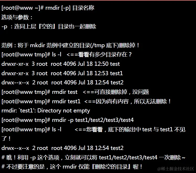 - -r:递归删除,主要用于删除目录,可删除指定目录及包含的所有内容,包括所有的子目录和文件。