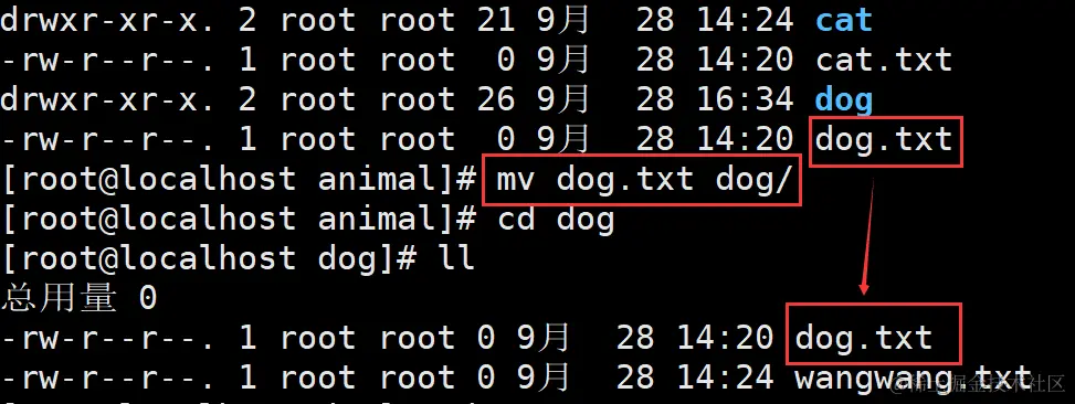 #也可以移动目录。和 rm、cp 不同的是,mv 移动目录不需要加入 "-r" 选项