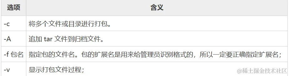 需要注意的是,在使用 tar 命令指定选项时可以不在选项前面输入“-”。