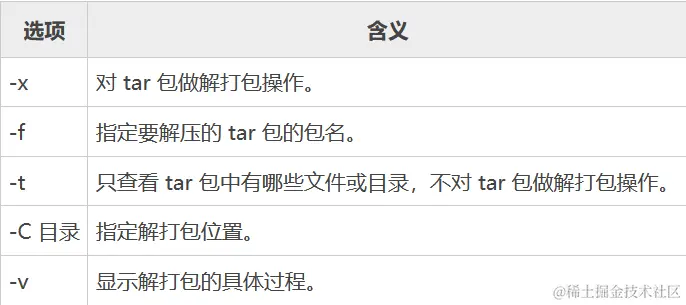 当 tar 命令用于对 tar 包做解打包操作时,该命令的基本格式如下: