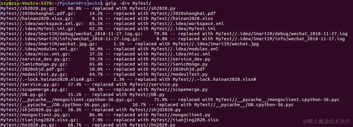再强调一下,gzip 命令只能用来压缩文件,不能压缩目录,即便指定了目录,也只能压缩目录内的所有文件。