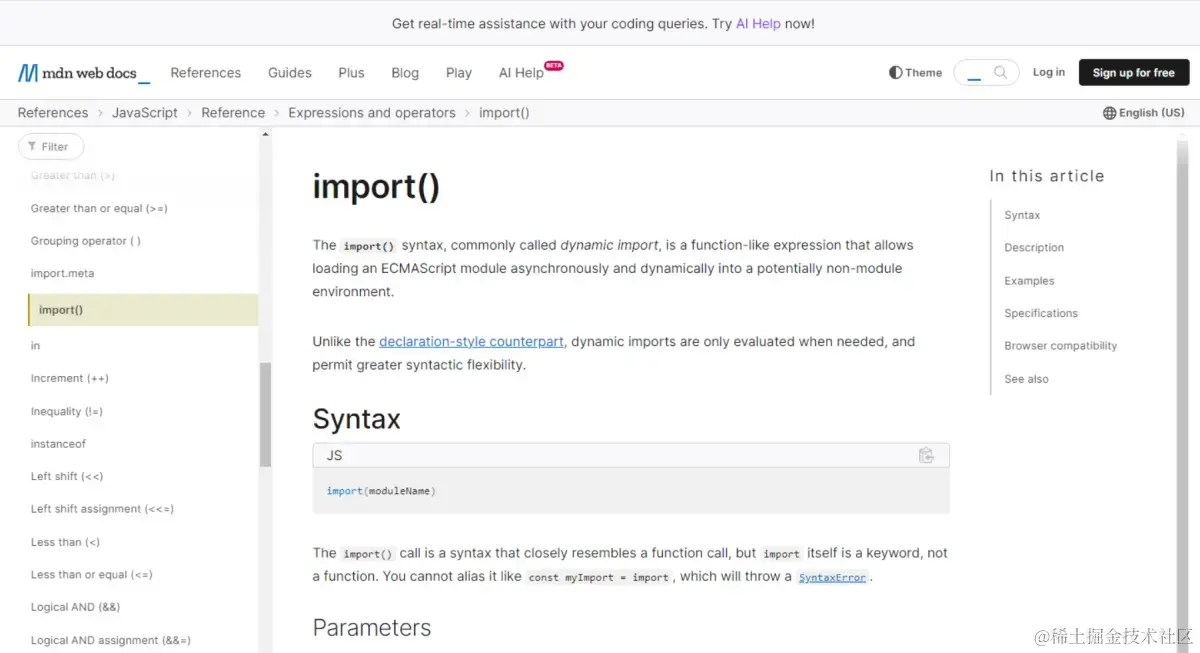 关于 import 关键字的更多详细介绍,可以查看 developer.mozilla.org 的官方文档: