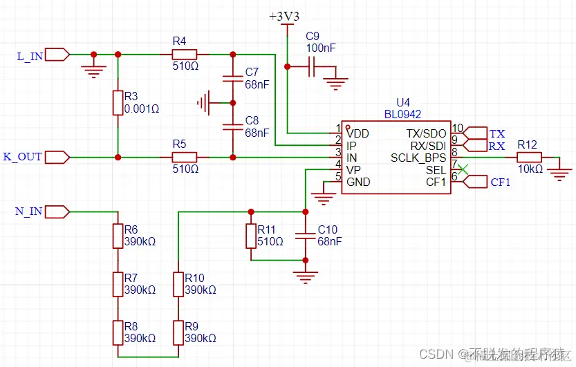 电参采集使用上海贝岭BL0942电能计量芯片,它是一颗内置时钟免校准电能计量芯片,适用于单相多功能电能表、智能插座、智能家电等应用,具有较高的性价比。