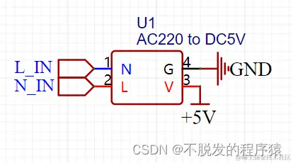 电路图设计只需要保留电源模块的接口焊接即可,原理图设计如下图所示: