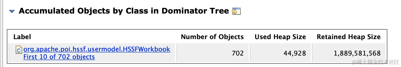 可以看到,org.apache.poi.hssf.usermodel.HSSFWorkbook对象数量已经达到702个了。