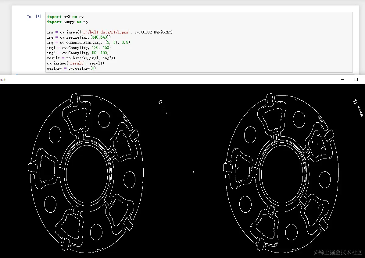 上图是进行边缘检测后的图像,在边缘检测过程中进行到求取函数时,函数会出现许多‘毛刺’,这些'毛刺'并不一定都是图像边缘,有可能是图像噪声引起的.那么如何去除掉这些噪声带来的误识别呢?答案是进行去噪以及阈值化.