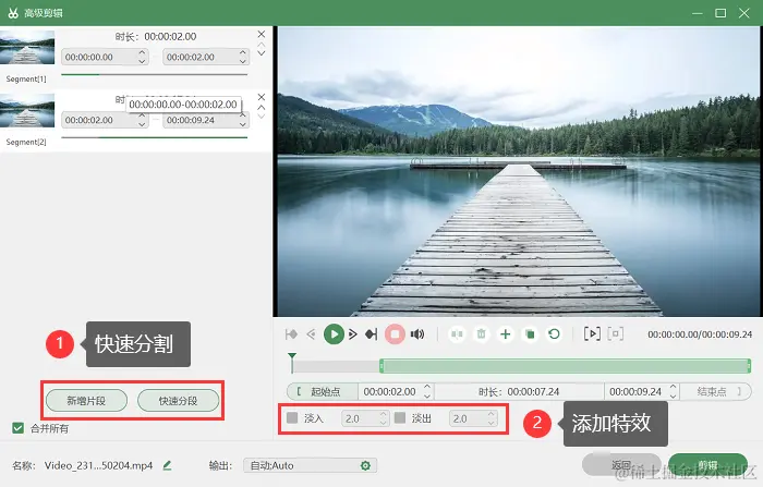 第3步:录制结束后,查看我们录制的视频,你可以选择直接保存,或者对视频文件进行更多处理,例如快速分割、添加特效等。
