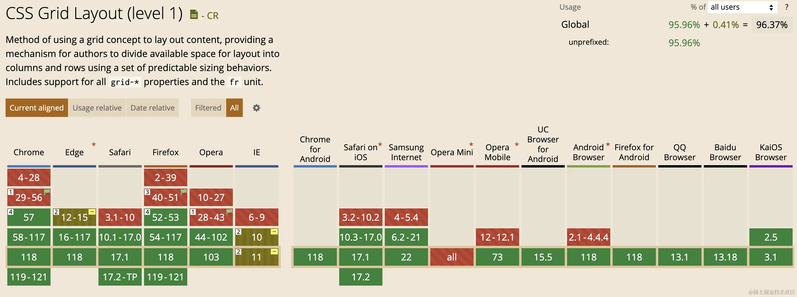 从 caniuse 上看,栅格布局的浏览器兼容性已经很高了: