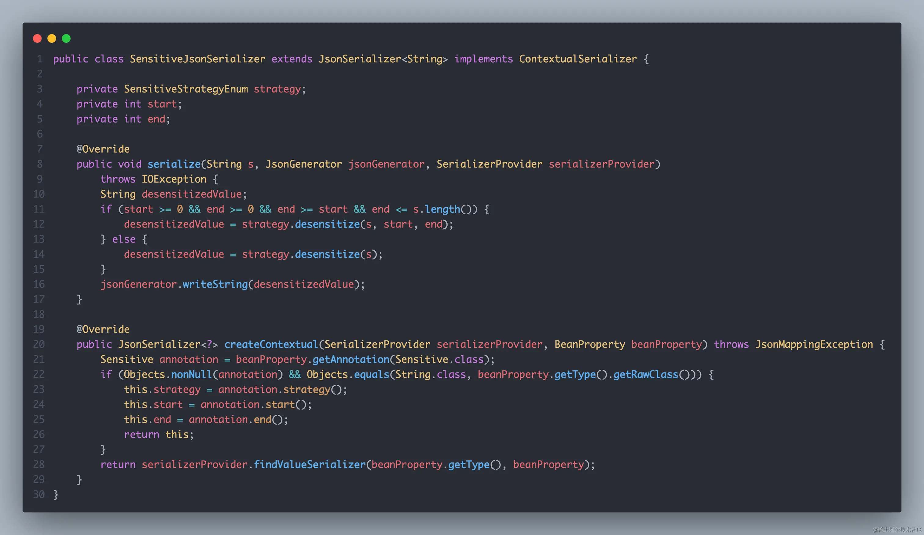在shigen之前的文章一个注解,实现数据脱敏中,有一位读者提到了一个优化项目,优化代码参考: