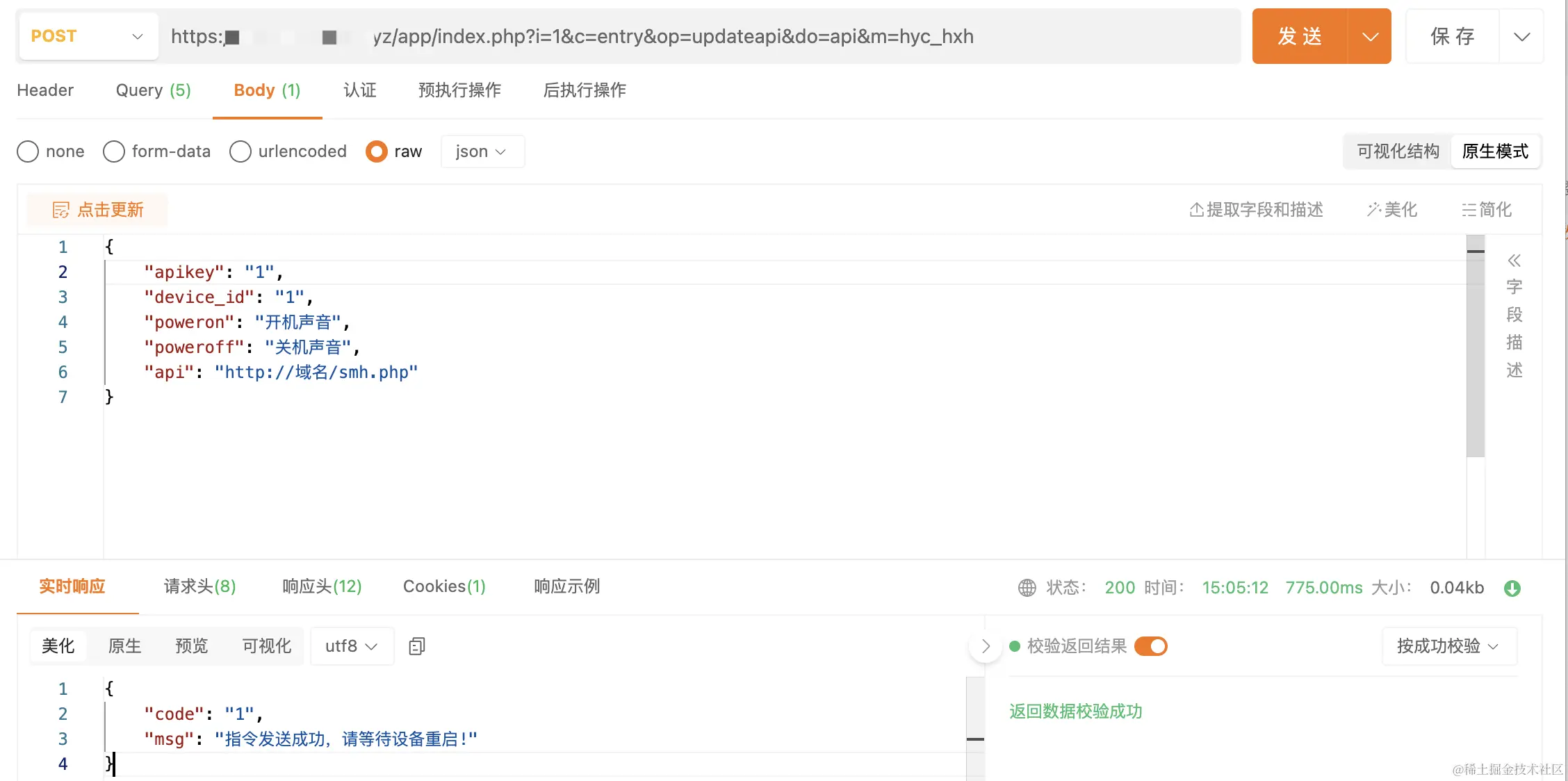- 五个参数缺一不可,激活和更新都需要发送,后端处理地址见其他接口文档