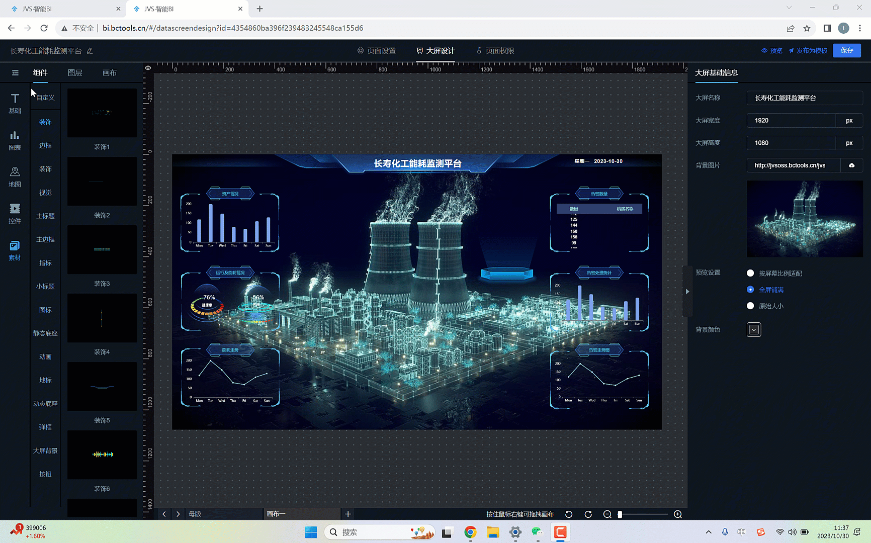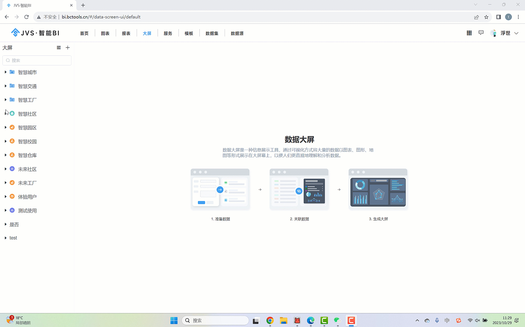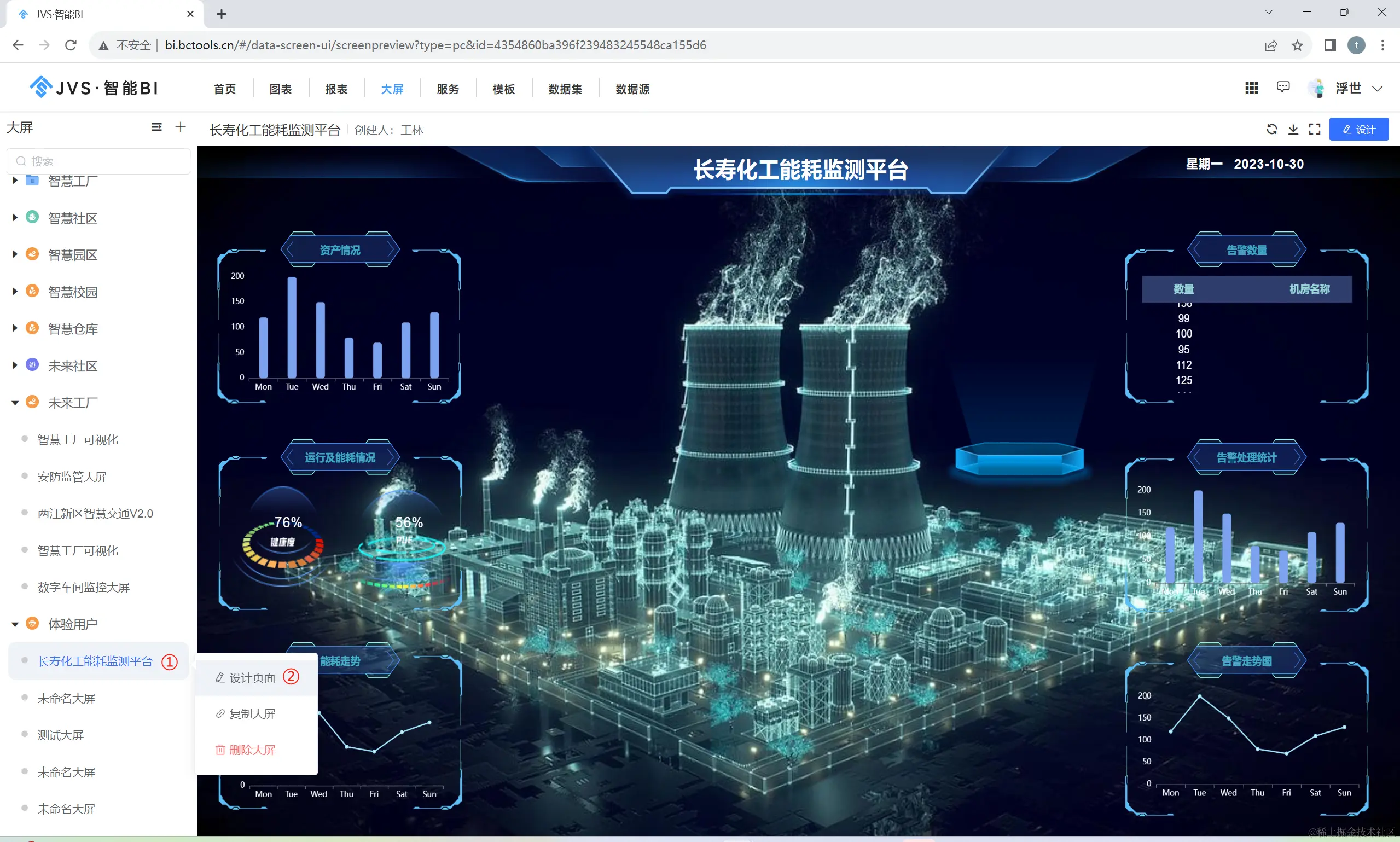 进入JVS-BI(bi.bctools.cn),进入大屏页面,如下图所示