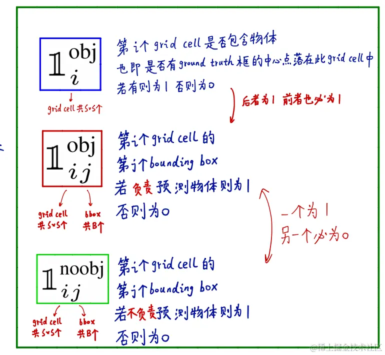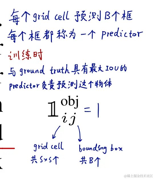 其中obj I表示对象是否出现在单元格I中,obj ij表示单元格I中的JTH边界框预测器“负责”该预测。