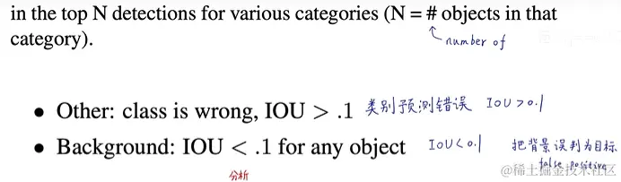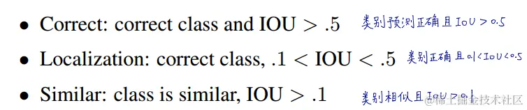 我们使用Hoiem等人的方法和工具,对于测试时的每个类别,我们查看该类别的前N个预测。每个预测要么是正确的,要么根据错误的类型进行分类: