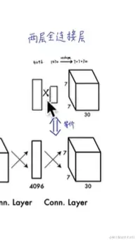 输出一个4096维的向量,喂到一个1470个神经元的全连接层,输出1470维的向量,在把它reshape 一下,就变成7*7*30的张量,