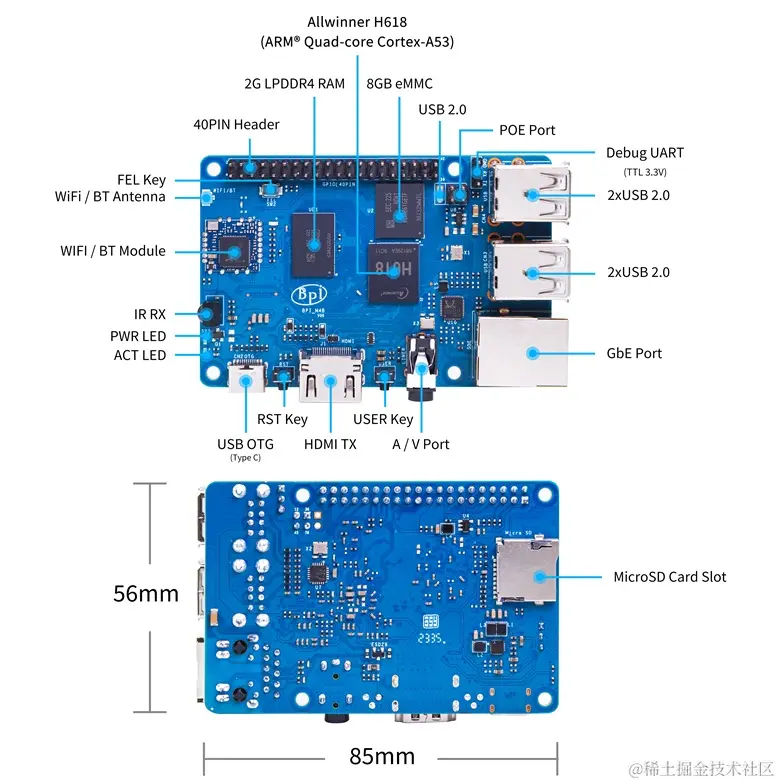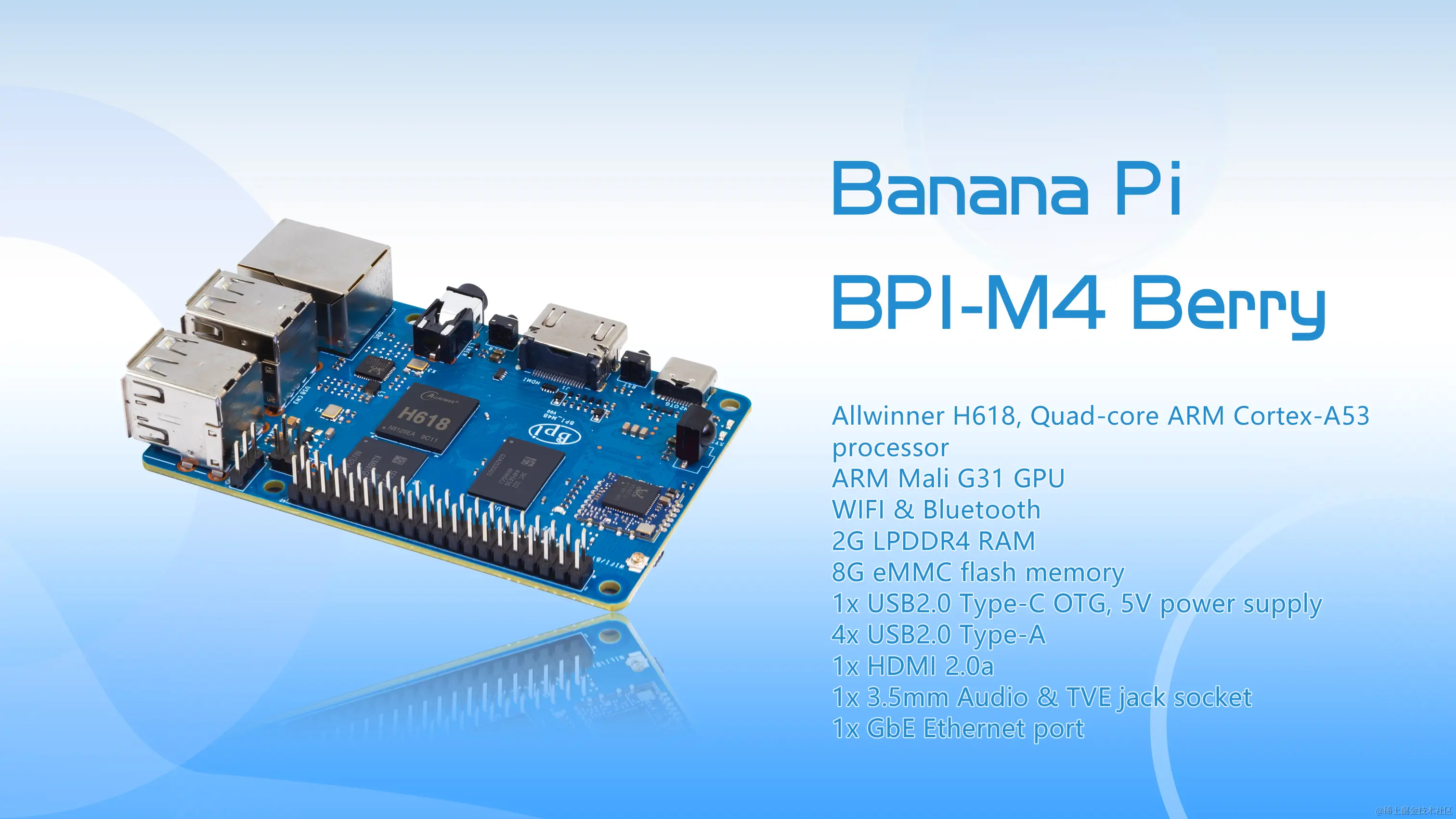 BPI-M4 Berry 开发板作为一款强大的单板计算机(SBC),充分挖掘了全志 H618 系统级芯片(SoC)的功能,为开发人员提供了令人印象深刻的性能和丰富的特性。与树莓派 4b 类似,BPI-M4 Berry 能够展现与之相匹敌的CPU性能,支持LPDDR4内存,集成WiFi和蓝牙功能,并拥有熟悉的40-pin接头布局,还有4个USB接口和一个GbE RJ45端口。