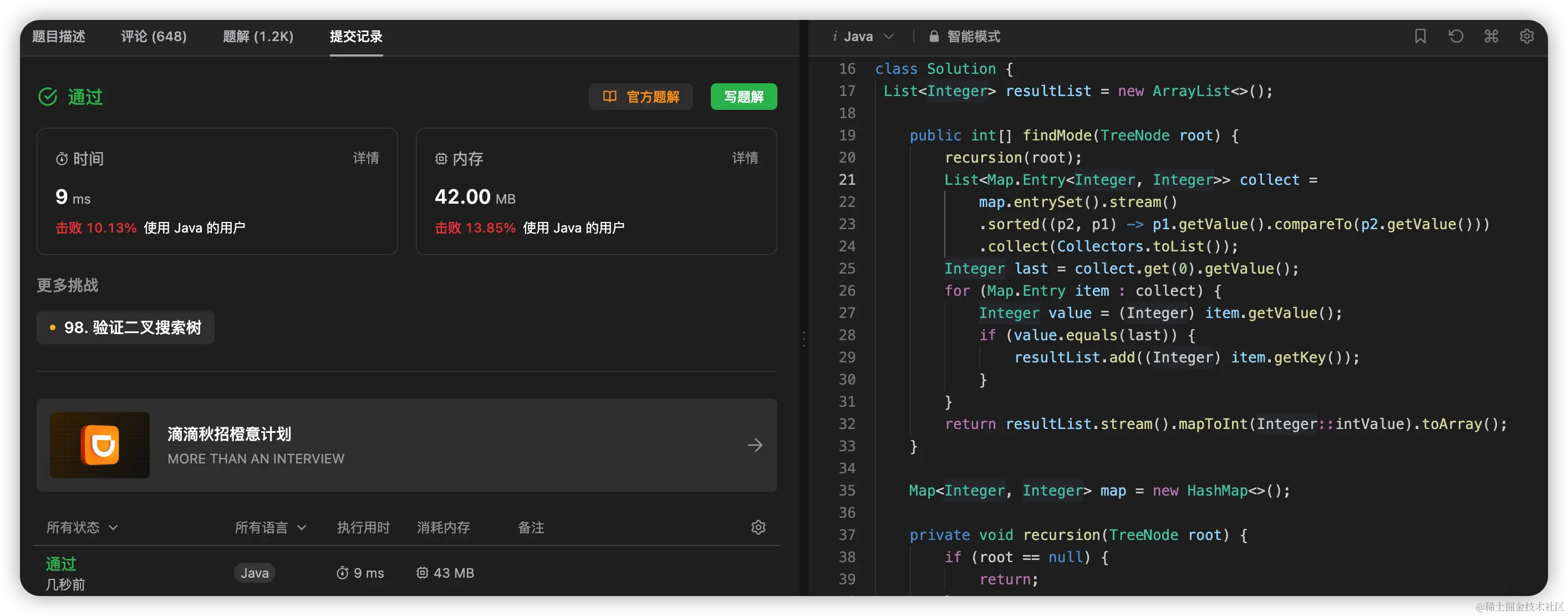 给你一个含重复值的二叉搜索树(BST)的根节点 root ,找出并返回 BST 中的所有 众数(即,出现频率最高的元素)。