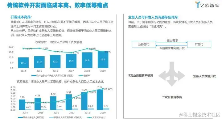 需要澄清的是,低代码的出现并不是为了颠覆传统IT开发,反而是为缓解传统IT开发与市场数字化需求的矛盾而诞生,两者既不是敌对关系,也不是迭代问题,而是市场选择的问题。