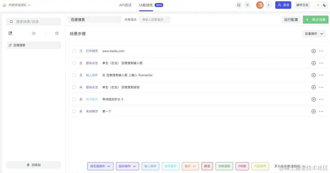 Runner Go web UI自动化测试基于Playwright框架构建,测试团队无需复杂的代码编写即可开展低代码的自动化测试。