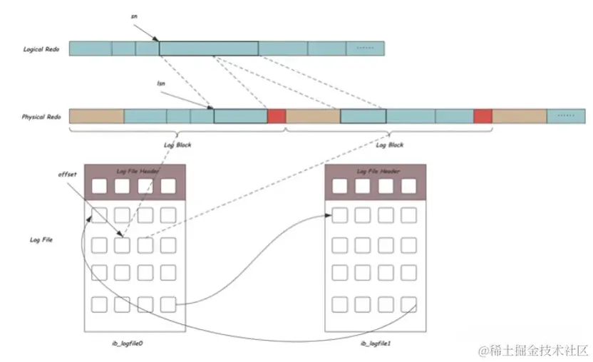 LSN 用来标识一个 Redo 的位置,但是最终 redo 的读写还是需要转换成对文件的读写IO,这时候需要的是文件空间的 offset,其换算方法如下real_offset=log.current_file_real_offset + (lsn - log.current_file_lsn)