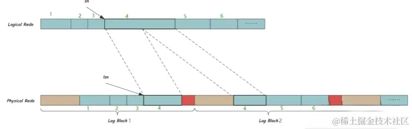 b、将 logical redo 按照固定大小的 Block 组织,并添加 Block 的首尾信息形成物理 redo,以 lsn 索引。