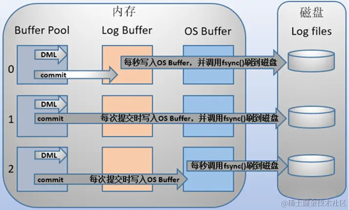 innodb_flush_log_at_trx_commit各参数流程如下: