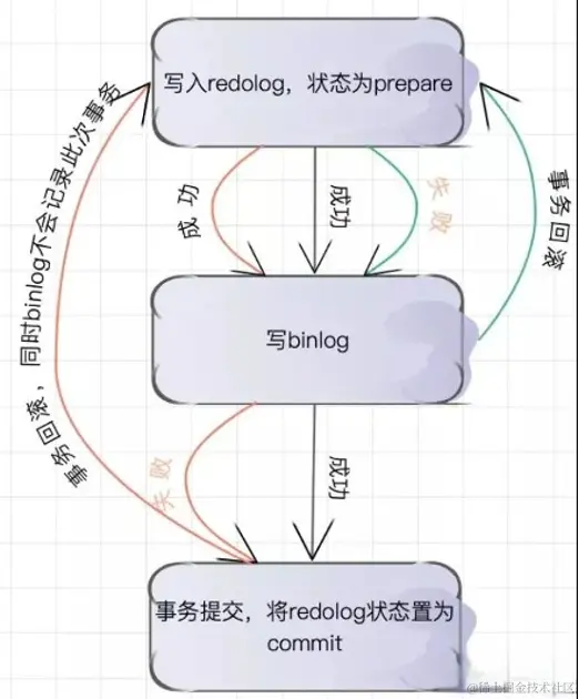 binlog 必须与redo log,保持一致,在 redo log 写入成功后即写入binlog,此时redo log为prepare 状态,若事务回滚,redo log 没有真正的刷入到磁盘中,此时binlog 擦除此次事务记录。